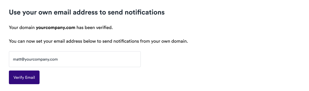 - Enter the email address you want to send notifications from (e.g. matt@yourcompany.com).