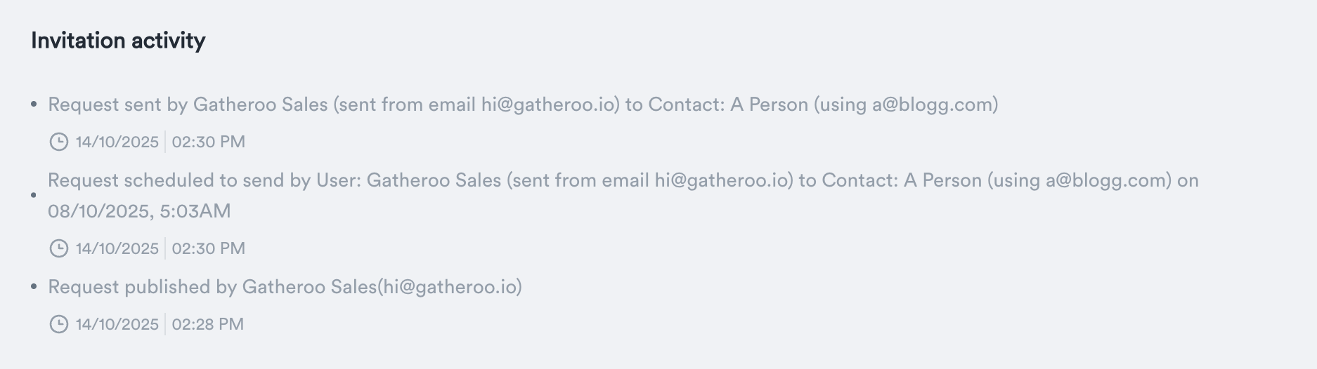- Activity Logging: All scheduling actions are recorded in your invitation activity for audit purposes