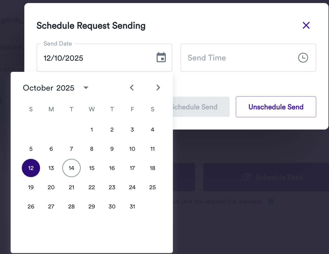 The Schedule Send feature lets you prepare requests in advance and specify exactly when they should be delivered to recipients.