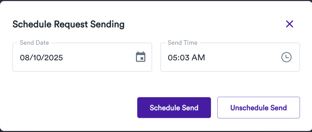 The Schedule Send feature transforms how you manage request timing, allowing you to work when it’s convenient for you while ensuring optimal delivery timing for your recipients.